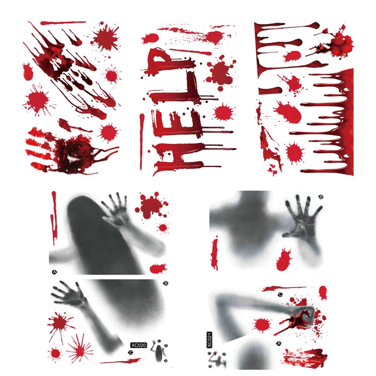 Halloween Stickers Horror Blood Hand Print Door Stickers Window Bathroom Shadow Glass Female Ghost Wall Decal Halloween Decor Aliexpress